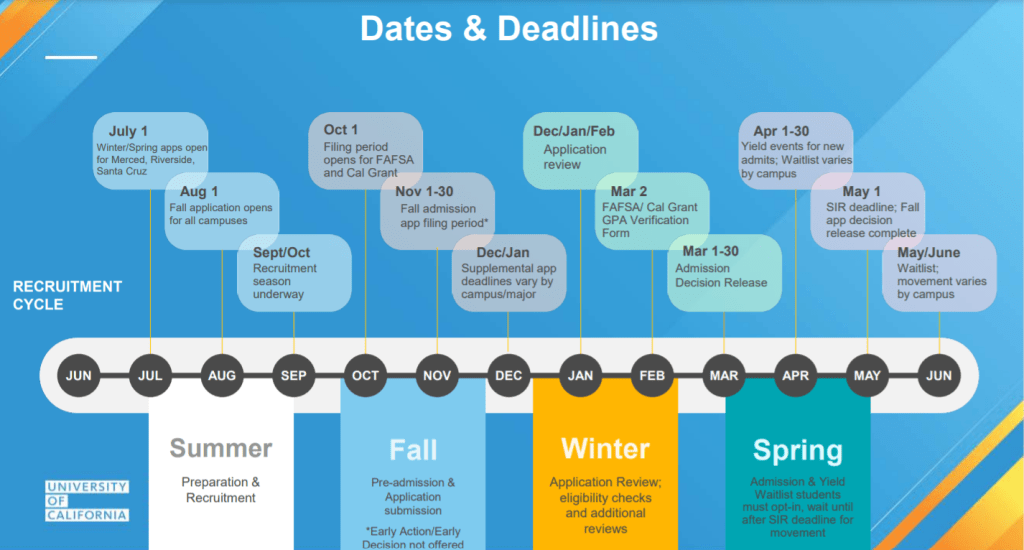 - Prepare and take your SAT/ACTs. Check out the Test Dates here as these are very early in the academic year.