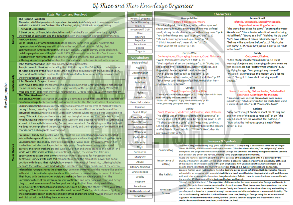 Download: Of Mice and Men Knowledge Organiser