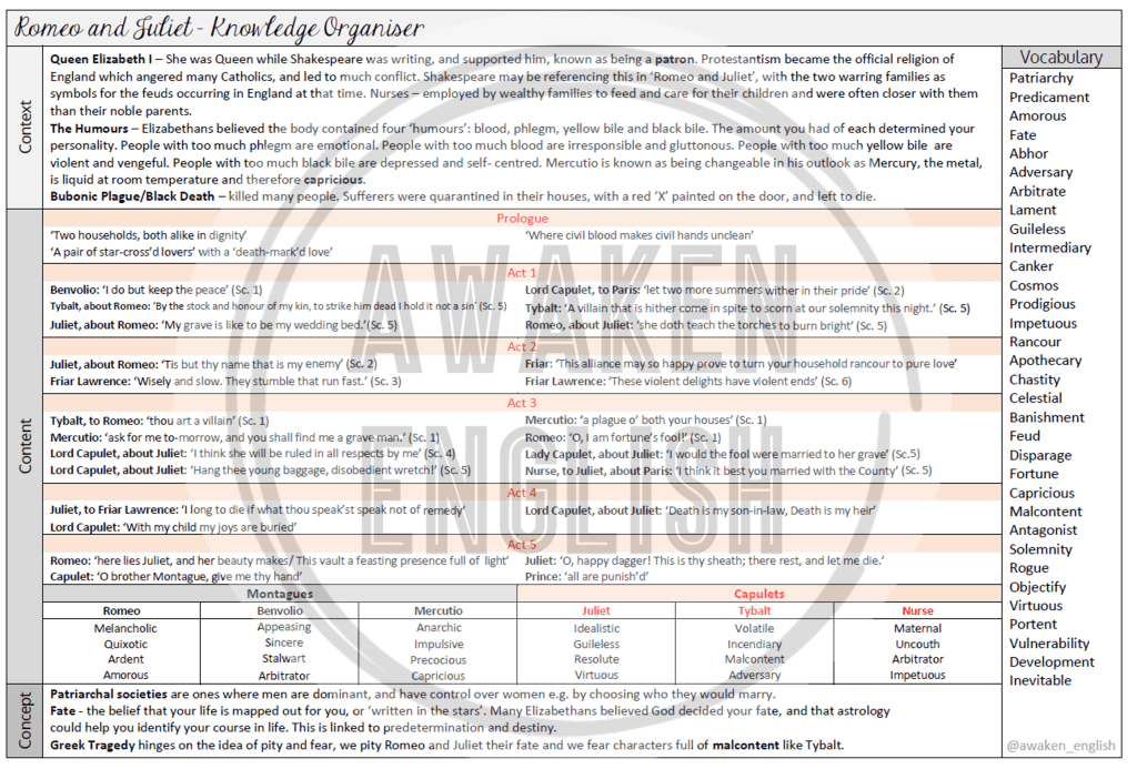 Download: Shakespeare’s Romeo & Juliet Knowledge Organiser